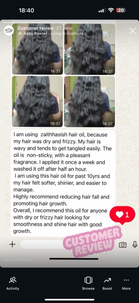 Zaith-Hashish Hair Oil is more than a hair remedy—it’s a transformation rooted in age-old Ayurvedic wisdom. With virgin coconut oil as the base and over sixty handpicked herbs infused through traditional cold-processing, every drop delivers deep nourishment to your scalp and hair. From reducing hair fall and dryness to preventing premature greying, this powerful herbal blend restores natural strength, boosts growth, and leaves your hair visibly softer, darker, and healthier. Use it regularly and feel the difference in just a few weeks.